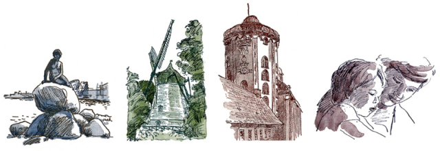 For Magasin tegnede jeg i nogle år denne type tegninger til førstedagskonvolutter.